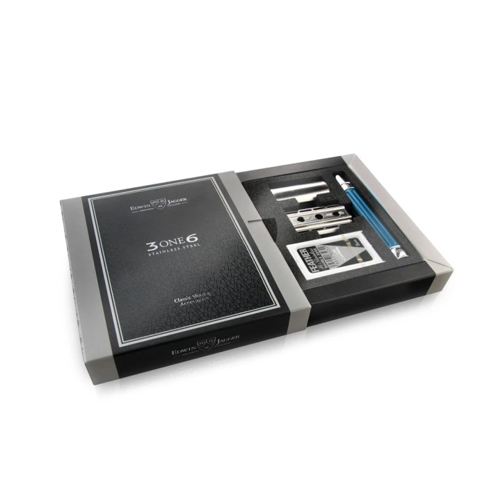 The sensational performance and finish of the Edwin Jagger 3ONE6 Stainless Steel Anodised Blue DE Safety Razor has been achieved using revolutionary product design and advanced precision manufacturing techniques.