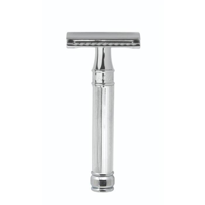 Edwin Jagger is Europe’s foremost manufacturer of luxury handmade shaving equipment. Edwin Jagger products are crafted and hand-assembled in Sheffield, England — a city known for its rich industrial history. This Edwin Jagger DE89L Chrome Lined DE Safety Razor is a traditional, waste-free double edge safety razor, and is supplied with shaving cream in handy tube.