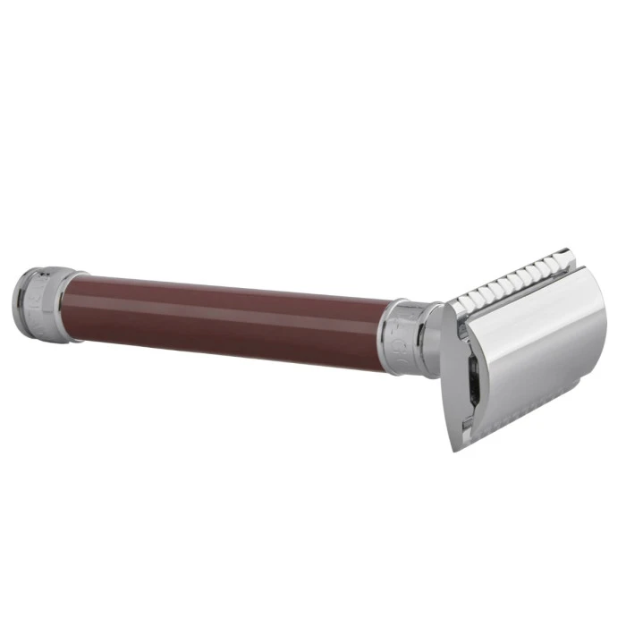 Edwin Jagger is Europe’s foremost manufacturer of luxury handmade shaving equipment. Edwin Jagger products are crafted and hand-assembled in Sheffield, England — a city known for its rich industrial history. This Edwin Jagger DE812 Long Burgundy DE Safety Razor (Closed Comb) is a traditional, waste-free double edge safety razor.