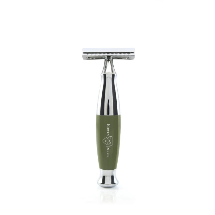 Edwin Jagger is Europe’s foremost manufacturer of luxury handmade shaving equipment. Edwin Jagger products are crafted and hand assembled in Sheffield England, a city known for its rich industrial history. The Edwin Jagger Green & Chrome DE Safety Razor is a high-quality closed comb double edge safety razor.