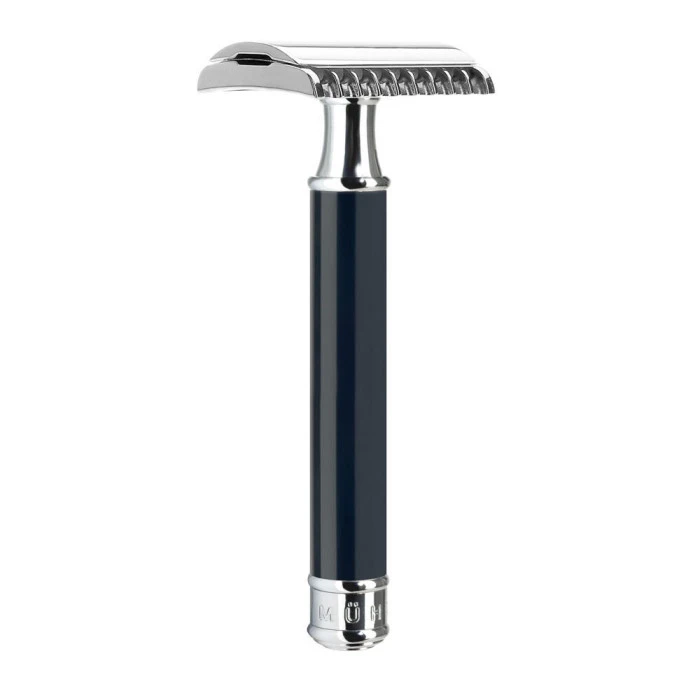 For a similar design with a closed comb head, try the Muhle R106 Black DE Safety Razor (Closed Comb).