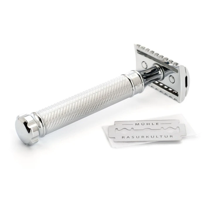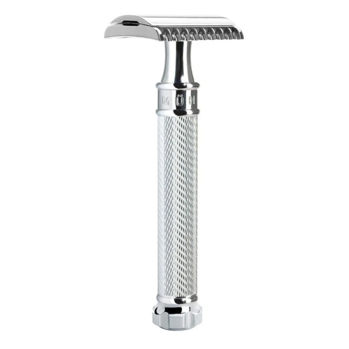 For a similar design more suited to those new to using a safety razor, try the Muhle R89 Twist DE Safety Razor (Closed Comb).