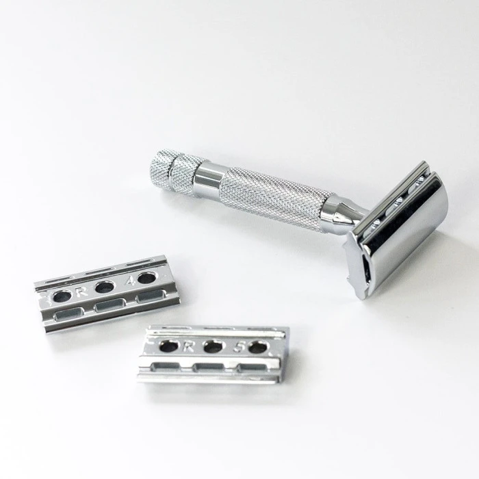 Made in China, the Rockwell 6C is cast from high quality chrome plated zinc alloys and features a striking white chrome finish. Patented adjustable system, with 6 size settings (on three reversible plates) to allow the user to personalise their shave according to their unique skin and stubble. Knurled patterning on the handle allows firm grip. Supplied with 5 Rockwell Swedish stainless steel blades. A lifetime of incredible shaves!